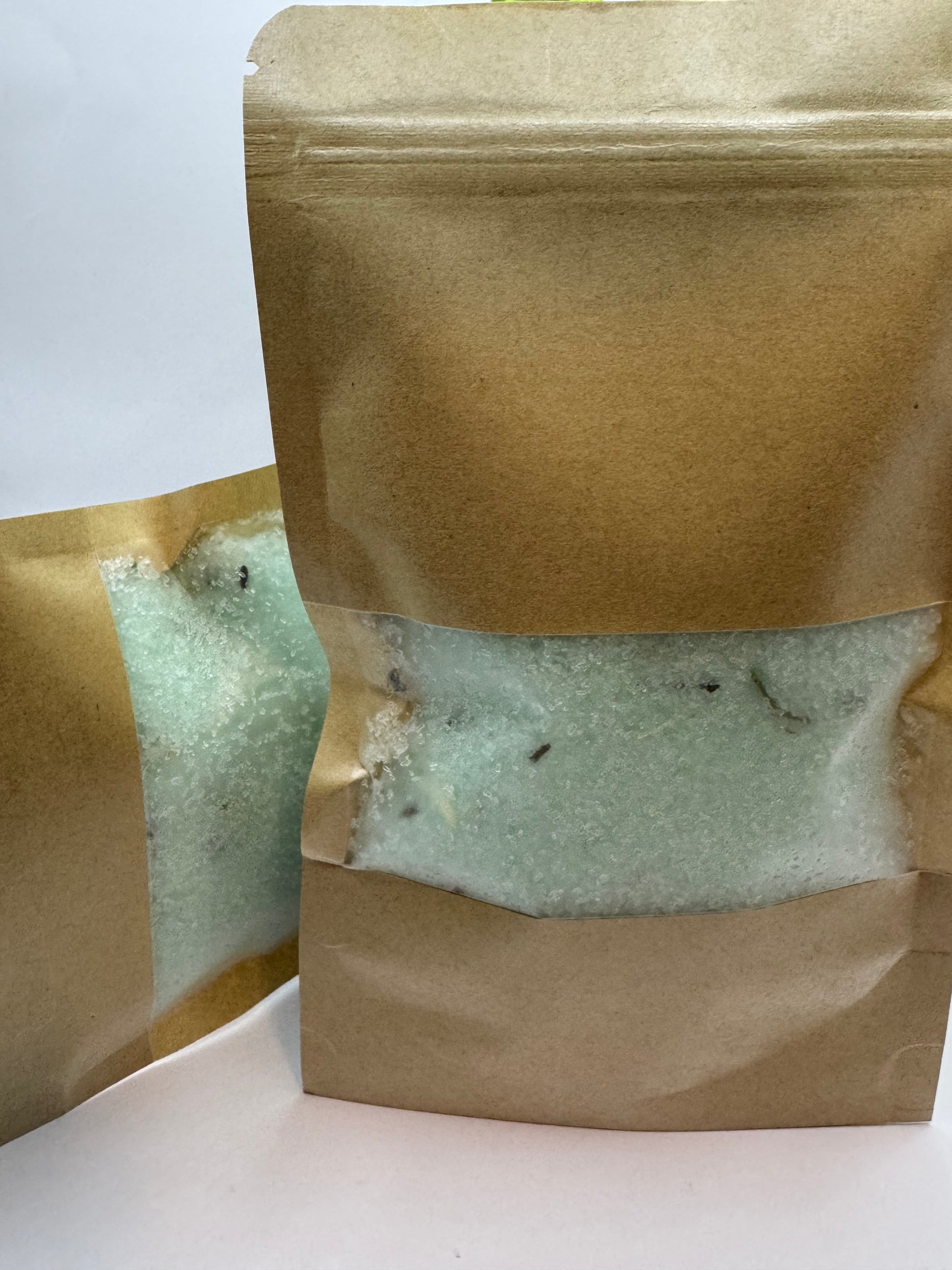 Ingredientes: Sales de Epsom, Sal del Himalaya, Aceite esencial de eucalipto, Aceite esencial de tea tree, Flores secas (opcional), Fragancia natural.